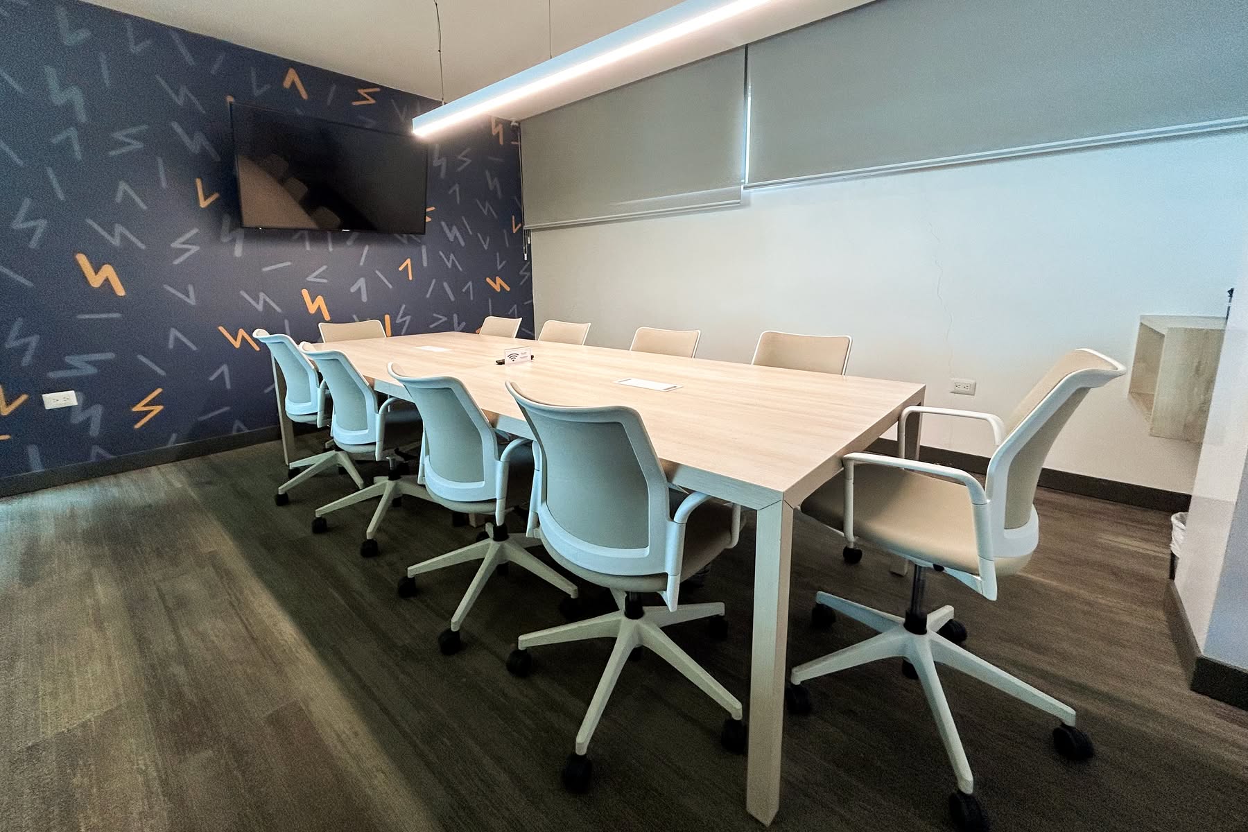 Áreas ideales para el trabajo en equipo con la capacidad de 4 a 10 personas, full Equipadas que permiten a los usuarios una mejor interacción en un espacio cómodo y privado.